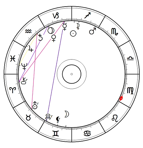 Mit Venus/Pluto im Spiegelpunkt dazu im Steinbock haben die öffentliche Meinung und der Staat den Charakter einer Glaubensgemeinschaft, einer Sekte angenommen. Die Gesellschaft ist weiter von ideologischen Auseinandersetzungen geprägt.